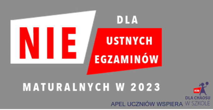 Apelujemy do Pana Ministra Edukacji i Nauki o odwołanie obowiązkowych maturalnych egzaminów ustnych dla absolwentów liceów 2023 roku i techników w 2024.