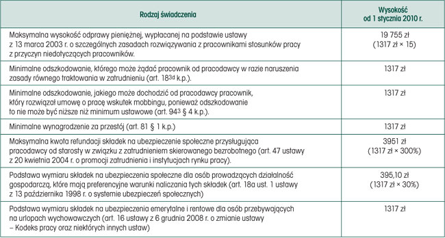 TABELA 5. Inne świadczenia zależne od minimalnego wynagrodzenia