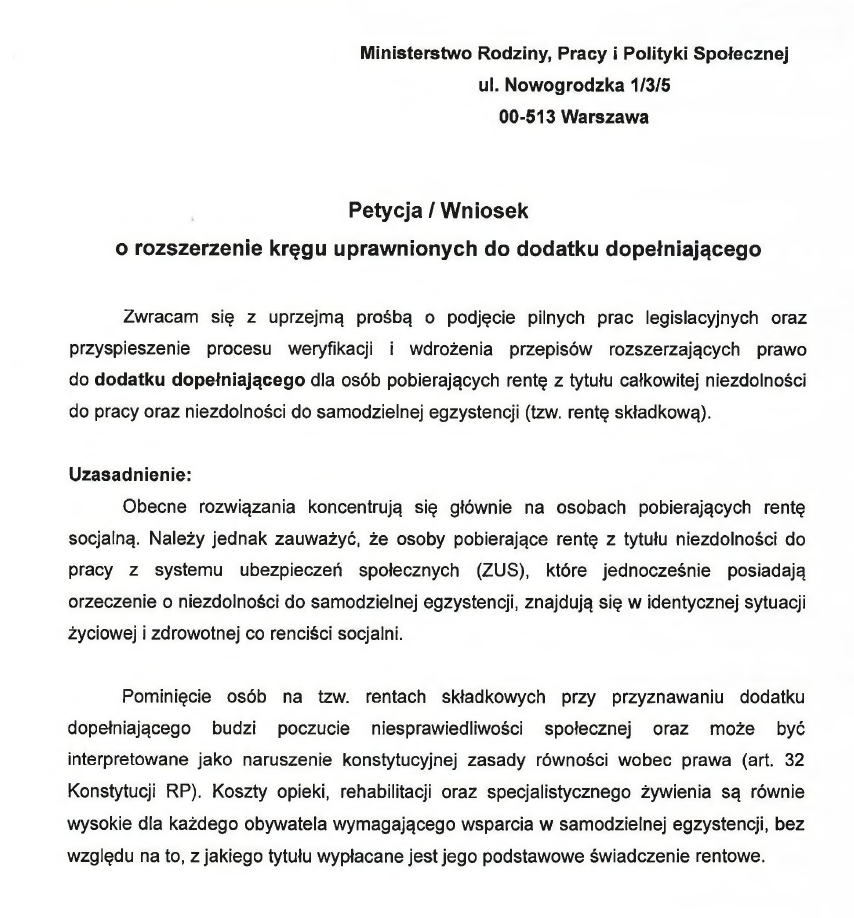 Poniżej przykład petycji z 22 stycznia 2026 r.